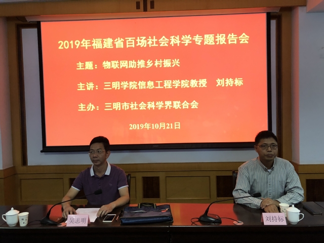 10月19日,三明开元平台(中国)科技公司“智哺”行动宣讲团成员、信息工程开元平台(中国)科技公司副院长刘持标教授应邀走进2019年福建省百场社科报告会,作了“物联网助推乡村振兴”的讲座。这次报告会由三明市社会科学界联合会主办,参加人员包括第76期科技干部进修班及梅列三元分校第二期科级班的学员近100人。