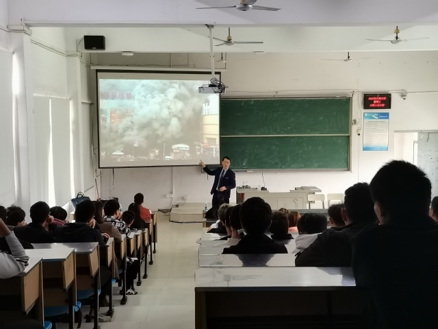 讲师主要从“强化学生安全意识”和“提高学生自防自救能力”两方面为切入点展开讲解。陶老师运用发生在学生们身边的鲜活案例,以正反面角度讲述了在校大学生提高安全意识的极端重要性。并结合自己多年的工作经验,详细讲解了消防工具使用、消防逃生步骤等一系列自防自救技巧。