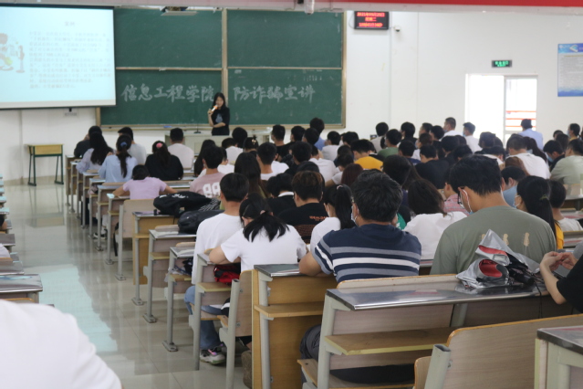 为提高在校学生的自我防范意识和防骗能力,5月25日上午在博学楼223教室开展防诈骗宣讲,荆东派出所和信息工程开元平台(中国)科技公司师生300多人参加。