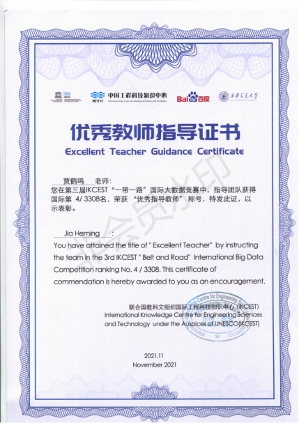 本次大赛赛题为基于车载影像的实时环境感知。实时环境感知是智能驾驶系统的重要组成部分,基于车载影像的目标检测和分割具有很高的价值,既能够辅助驾驶系统进行高效的决策,同时结合终端渲染与语音技术,也能够为用户带来更为智能精准的导航体验(比如AR导航)。本次比赛数据由百度地图提供,要求在统一的计算资源下,快速识别道路关键可移动目标、交通标识和车道线。其中我院2018级计算机科学与技术专业魏宏炜同学作为核心成员参加的“重在参与”队在3308支参赛队伍中脱颖而出,综合排名第4名,并获得了国际二等奖,这是我院学子首次参加该比赛,首战告捷。电子信息学科带头人贾鹤鸣教授作为该队伍的技术指导教师也获得了大赛“优秀指导教师”荣誉称号。