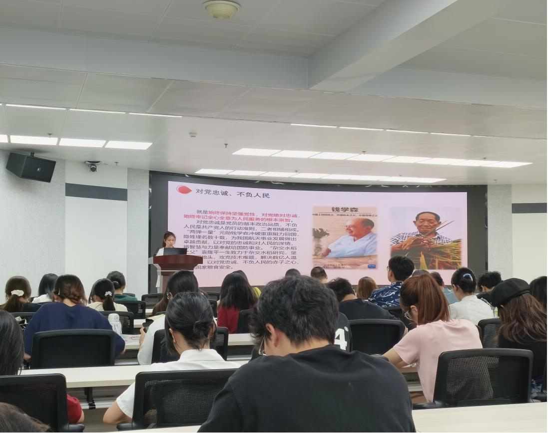 宣讲中,主讲人围绕伟大建党精神深刻内涵层层剖析。从“坚持真理、坚守理想”的信仰根基,到“践行初心、担当使命”的价值指引;从“不怕牺牲、英勇斗争”的精神特质,到“对党忠诚、不负人民”的赤子情怀,结合李大钊传播马克思主义、夏明翰捍卫真理、袁隆平坚守为民初心等事例,生动展现建党精神的传承与实践,让同学们深刻领悟其历史意义与时代价值。