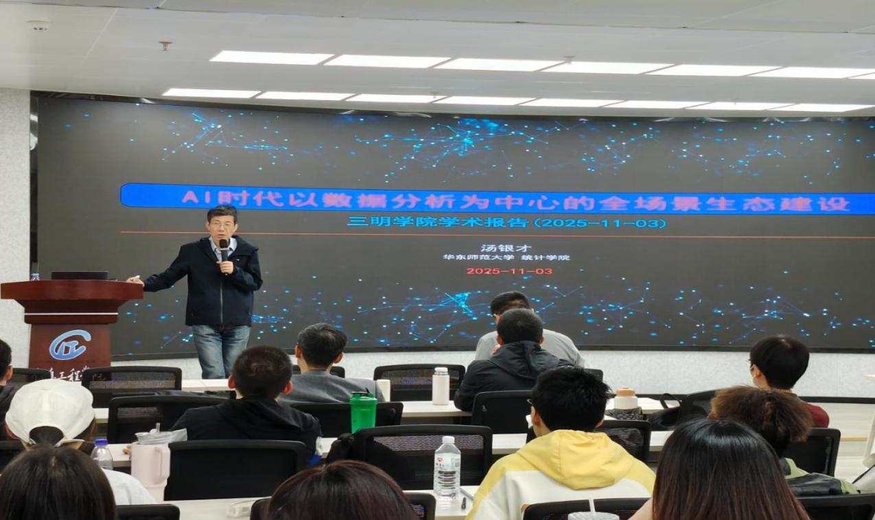 为提升教师科研水平,培养学生科研兴趣,拓展师生学术视野,2025年11月3日,华东师范大学汤银才教授受邀来到开元平台(中国)科技公司,开展题为《AI时代以数据分析为中心的全场景生态建设》学术报告。